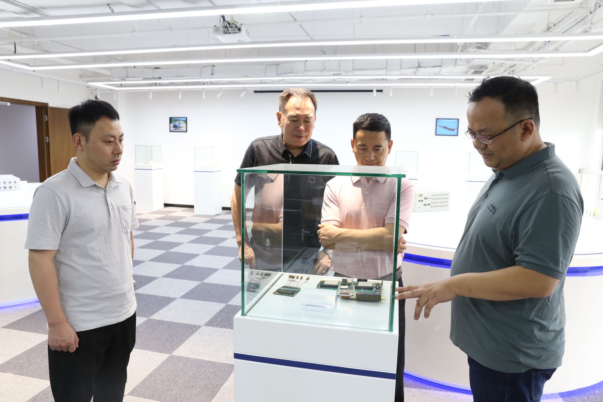 毛大付一行先后参观了成都研究院多家在孵企业,包括集成电路封装与测试平台、成都信航科技有限公司、四川韵光智能科技有限公司和四川易方智慧科技有限公司等,实地考察了成都研究院科技成果转移转化、校院地企协同创新等工作情况。