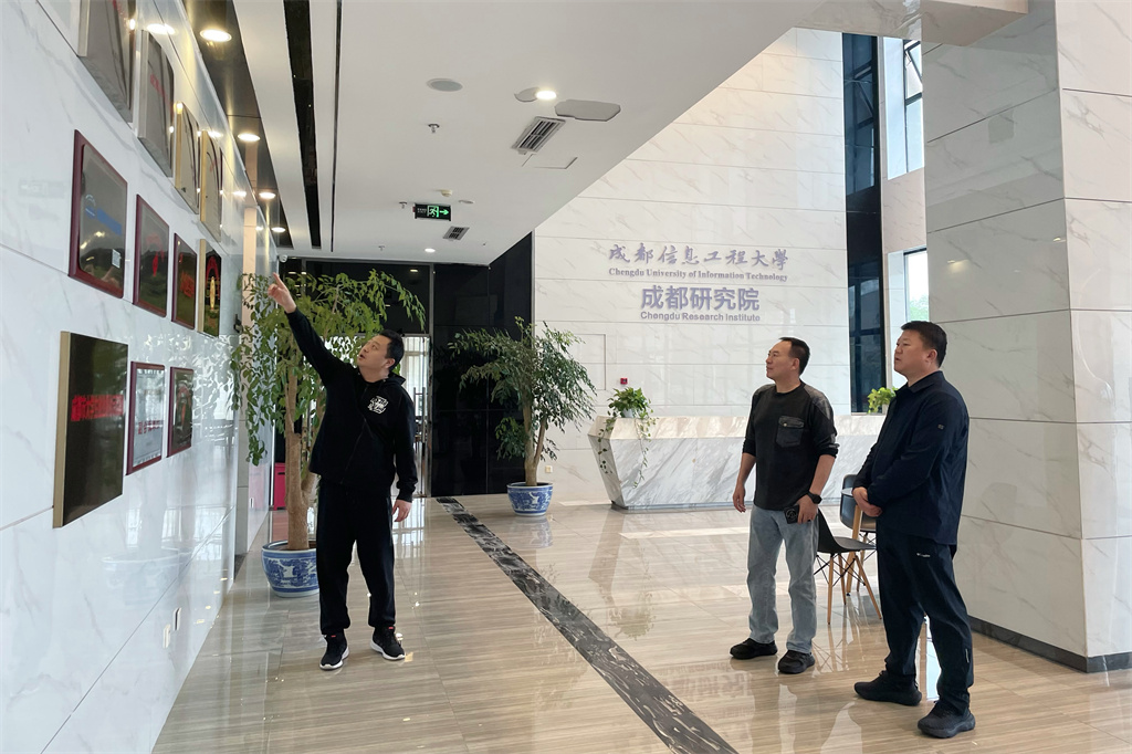 宋秋田一行先后参观了成都研究院科创大楼多功能厅、成创咖啡厅、健身房、篮球场、成创餐厅等园区配套服务设施以及“成创天使茶馆”和“天使投资俱乐部”等金融服务平台,并重点考察了成都研究院集成电路封装与测试公共技术服务平台、成都芯蚁科技有限公司SMT生产线、成都信航科技有限公司等在孵企业。