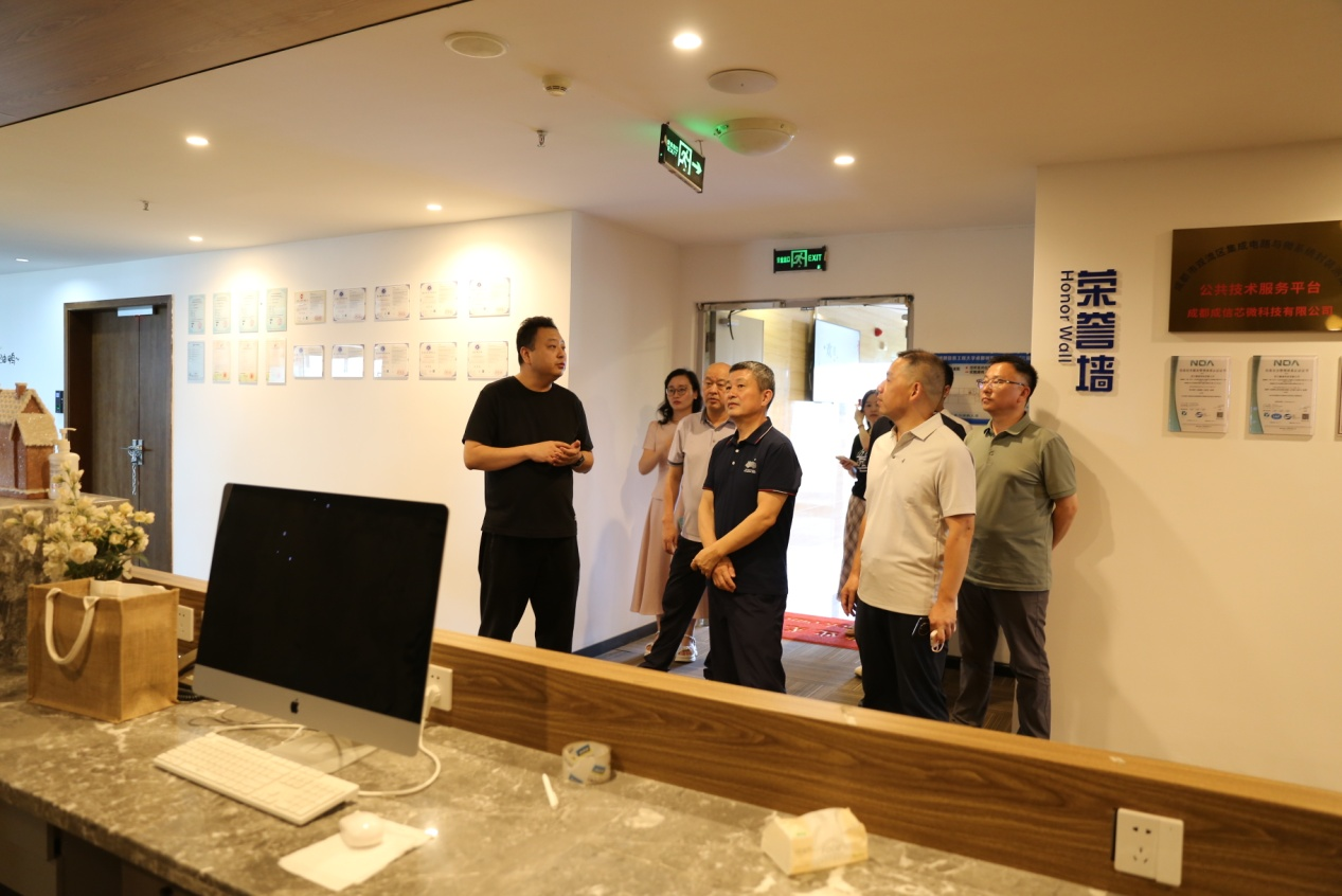 调研团先后参观了成都研究院科创大楼多功能厅、成创咖啡厅、健身房等园区配套服务设施以及“成创天使茶馆”和“天使投资俱乐部”等特色融资服务平台,重点考察了部分在孵企业,包括成都研究院集成电路封装与测试公共技术服务平台,成都芯蚁科技有限公司SMT生产线、翼驰联创中心等。